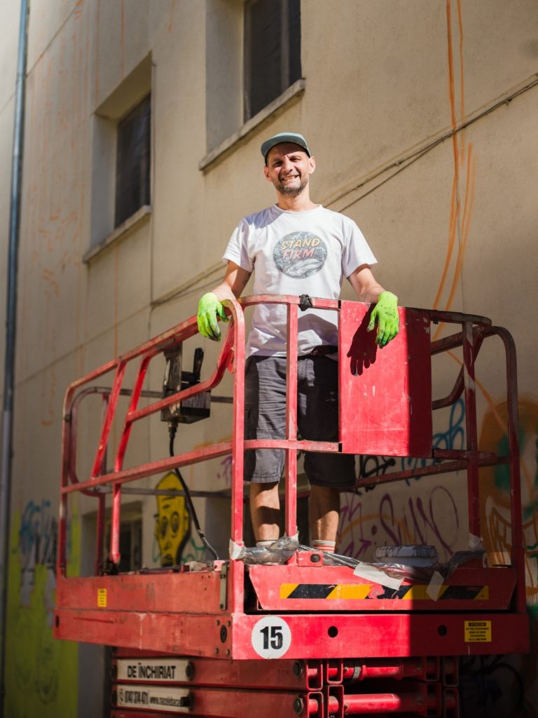 ❐ Lucrarea se întinde pe o suprafață de 150 mp și este realizată preponderent cu vopseaua purificatoare de aer Airlite și spray.